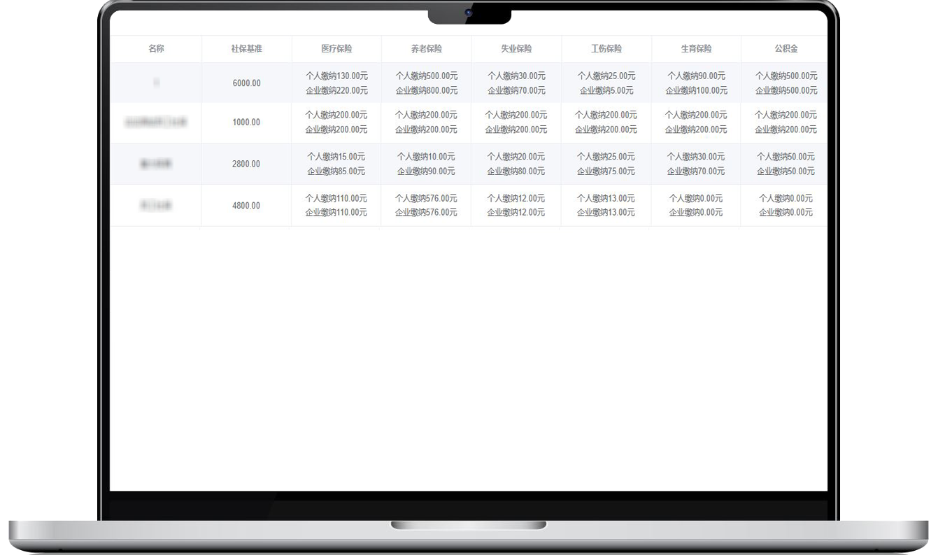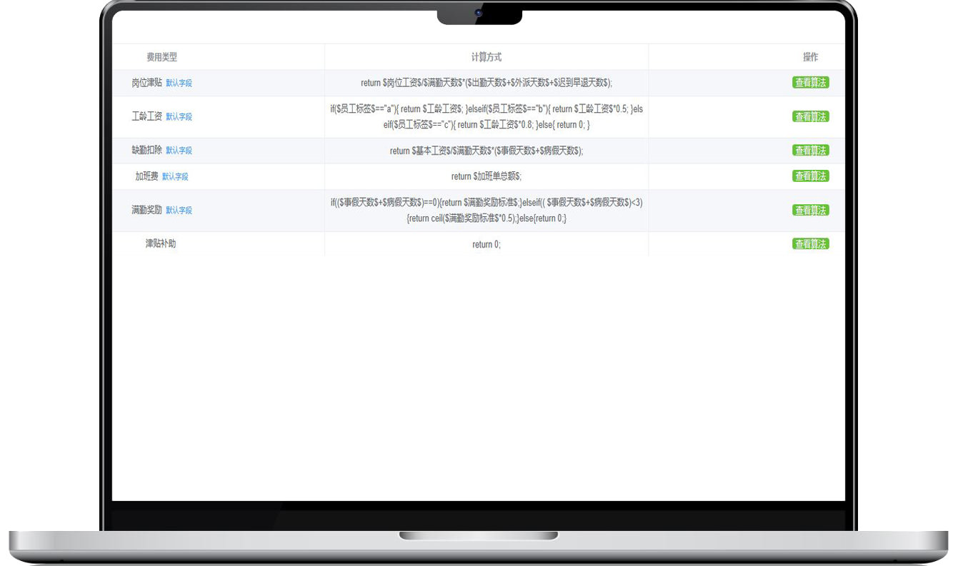 系统根据灵活资算法实现自动化的工资核算,包括薪资计算、岗位津贴、加班费、奖金、社会保险、个人所得税等各项扣除和补贴的计算