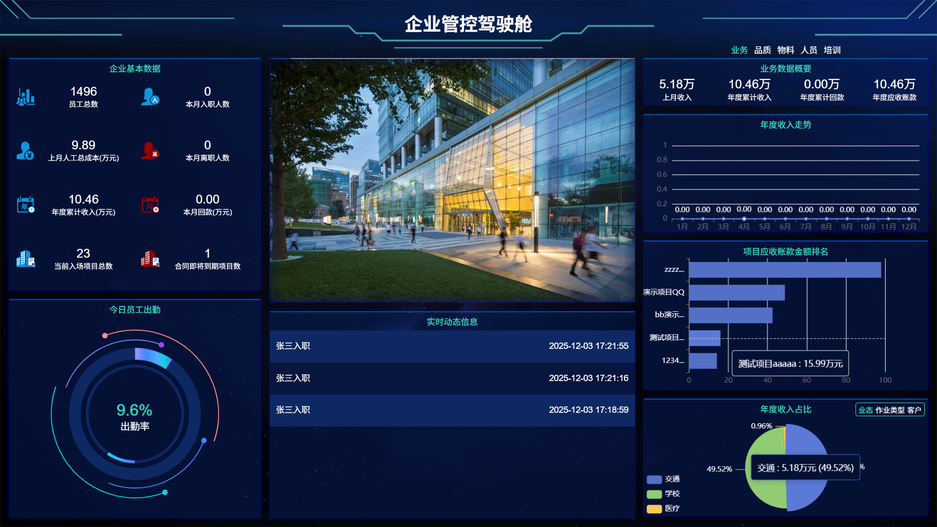 老板不用再催各部门提交各类数据报表来了解运营情况,驾驶舱自动汇总 “人员、业务、物料、品质” 所有数据。也不用再担心 “甲方突然问项目服务情况”,屏幕上的 “在办项目数 + 实时动态”,能让你立刻给出准确回复。 老板时间得到充分释放,可以去做更重要、更有价值的事。