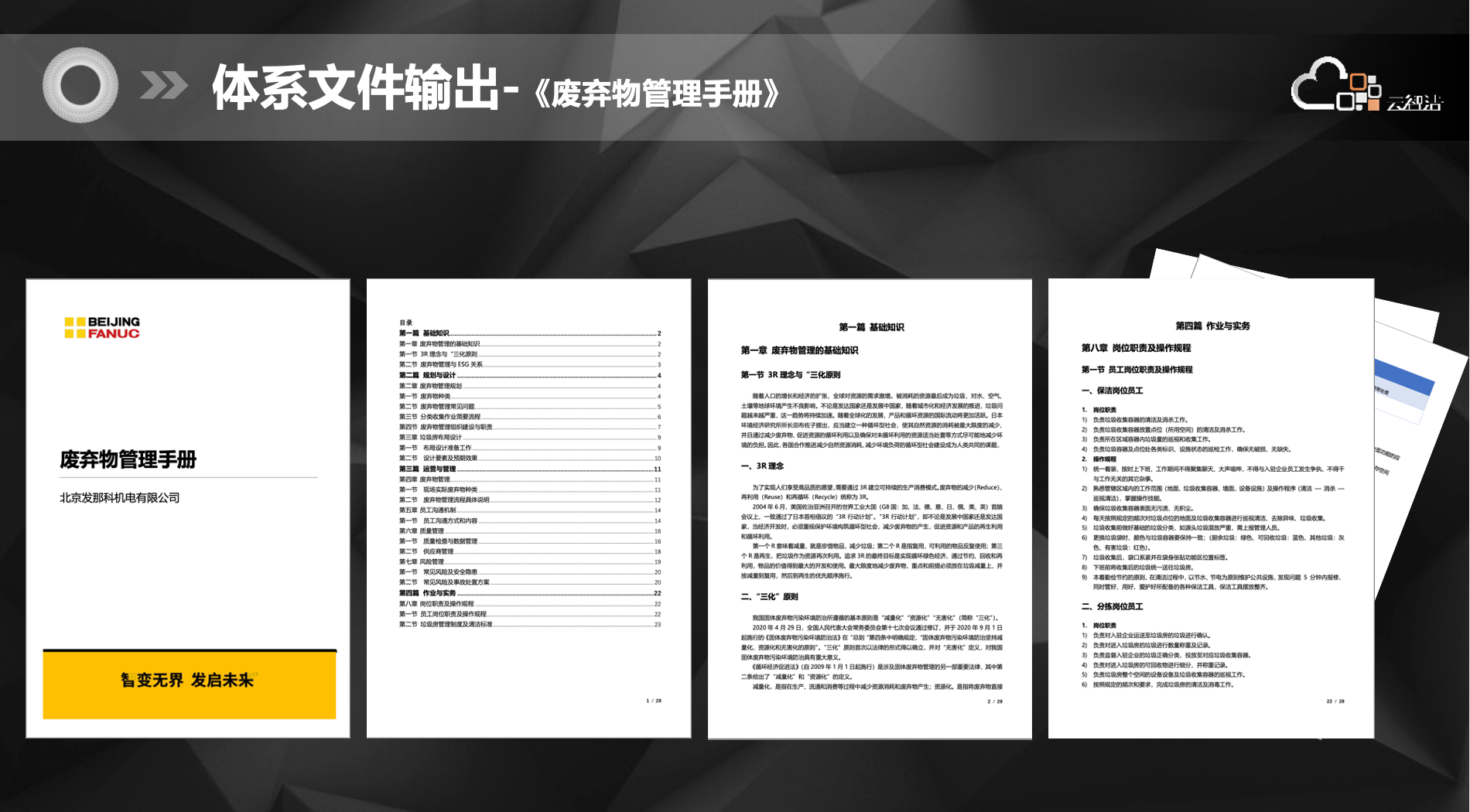 方案落地不是终点,而是知识资产沉淀的起点。我们将通过体系化文件输出,实现经验的标准化与复用,通过《废弃物管理实践手册》为管理层构建长效管理能力,为执行层解决实操痛点并提供具化的行动指南。
