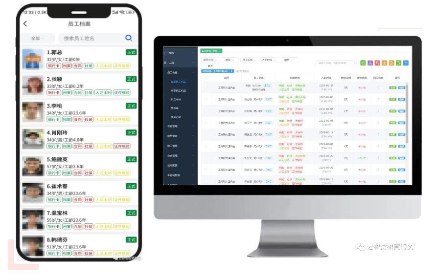 首先通过“云智洁”提供的模板将人员信息批量导入到系统中,后续新员工也可在PC端或手机端逐一录入。